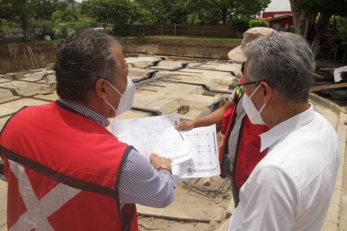 Para constatar los avances de las obras, el presidente del Tribunal Superior de Justicia y del Consejo de la Judicatura, realizó un recorrido por el lugar donde le fue explicado el funcionamiento del sistema de seguridad estructural que dará al inmueble resistencia ante los movimientos telúricos, así como los avances que presenta hasta el momento.