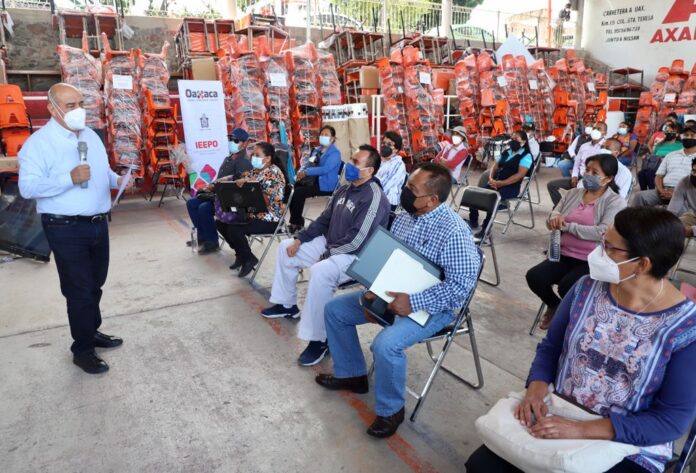 En el segundo día de gira de trabajo por la región Mixteca, como parte de la Jornada Estatal para el Diálogo y Consenso en Temas Educativos, el director general del IEEPO, Francisco Ángel Villarreal hizo entrega simbólica de estos apoyos a 18 planteles que atienden a dos mil 511 alumnos y donde laboran 152 profesores, ubicados en municipios como San Jorge Nuchita, San Miguel Tlacotepec, San Pedro y San Pablo Tequixtepec, Santa María Camotlán, Villa de Tamazulapam del Progreso y San Miguel Tequixtepec, entre otros.