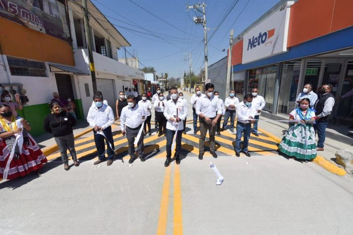 San Agustín de las Juntas, Oax. 25 de marzo de 2021.- El gobernador Alejandro Murat Hinojosa inauguró la pavimentación con concreto hidráulico de la calle Reforma en este lugar, con una inversión 3.6 millones de pesos para beneficiar a más de 10 mil personas, estudiantes de las universidades ubicadas en la zona y pobladores de los municipios de Santa Cruz Xoxocotlán, Cuilápam de Guerrero, Zaachila y la capital del estado.