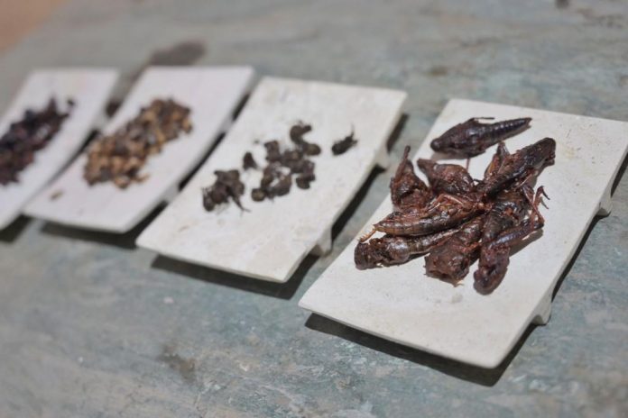 Oaxaca de Juárez, Oax. 9 de octubre de 2021. Chapulines, gusanos de maguey, hormigas chicatanas y jumiles son protagonistas de diversas recetas de la cocina del estado de Oaxaca que es reconocida por platillos como los tamales, moles, tacos, salsas y tlayudas que integran como ingrediente principal a los insectos, alimento que destaca por su sabor, variedad y valor nutrimental: proteínas, hierro, fósforo, zinc, calcio y fibra.