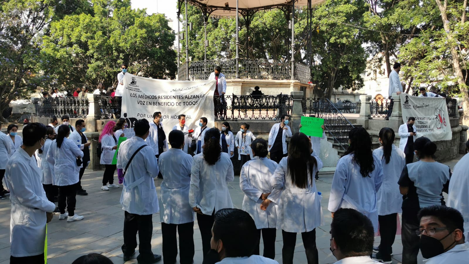 La petición de uniformes también se suma a estas denuncias, asegurando que no cuentan con las medidas sanitarias correspondientes para la labor de un médico, al respecto los médicos señalaron que se encuentran en asamblea permanente, por lo que confían en recibir una respuesta favorable para sus demandas y de esta manera mejorar él servicio a las y los oaxaqueños.