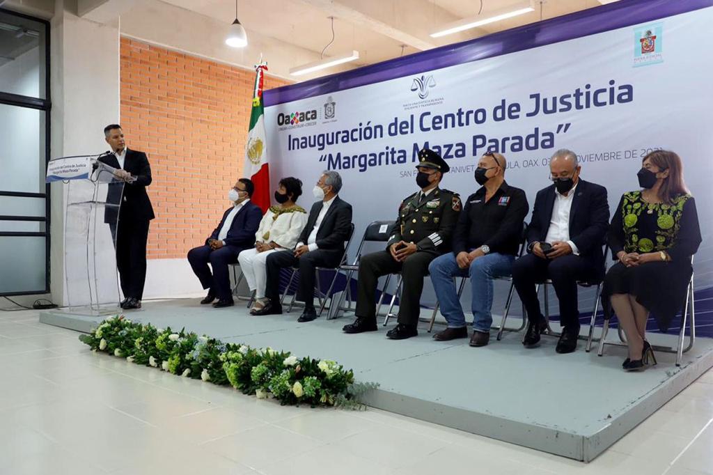 Posteriormente, en San Francisco Tanivet perteneciente al municipio de Tlacolula de Matamoros, las autoridades inauguraron el Centro de Justicia “Margarita Maza Parada”, un espacio que requirió una inversión mixta de 162 millones 472 mil 367. 06 pesos en beneficio de un millón 107 mil 577 habitantes.
